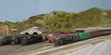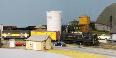 View of Cresson, PA - South end. Scenery courtesy of Dave Mitchell and Doug Kirkpatrick. Doug built Kirkpatrick Chrome, the engine house, and refurbished the station.